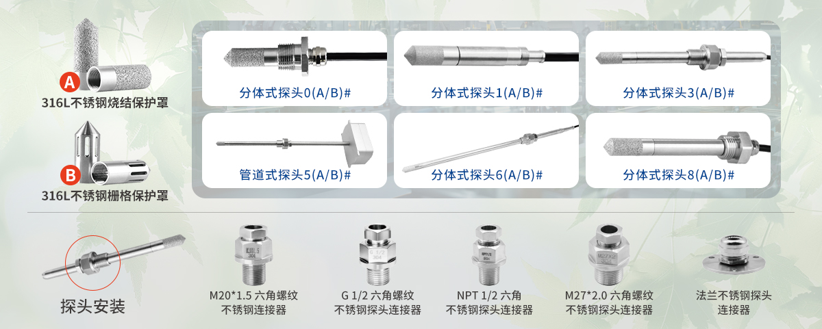 應(yīng)用于冷凍式干燥機(jī)、吸附式干燥機(jī)等對(duì)濕度要求極其嚴(yán)格的工況,也可作為零部件安裝在干燥系統(tǒng)、壓縮空氣系統(tǒng)等工業(yè)應(yīng)用的設(shè)備上,用以檢測(cè)氣體中的實(shí)際潮氣。